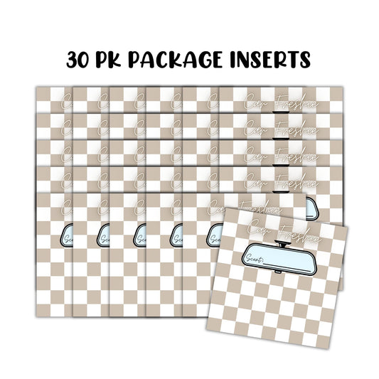 Tan Checkered Freshie Cardstock Insert for Holographic Bag 30pk 5.6x5.6” for 6” Square Bags Car Freshies Rounds Vent Clips Care InstructionsRegular price $12.00 USDRegular priceUnit price / per-