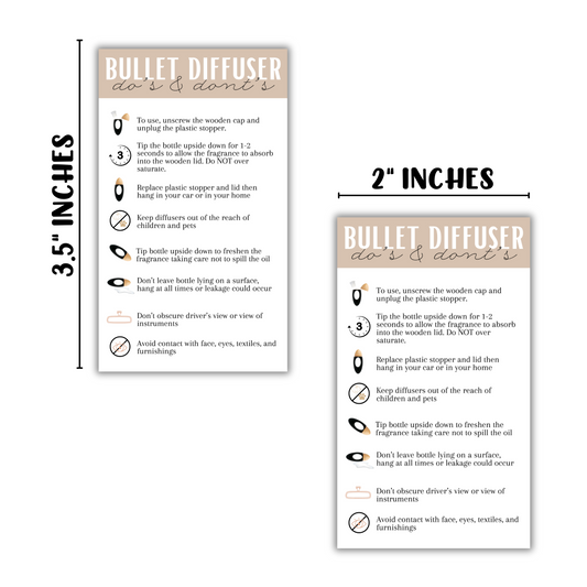 Bullet Car Oil Diffuser Care Instruction Card | 4.25x5.5”Regular price $13.99 USDRegular priceUnit price / per-