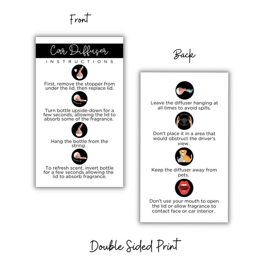 Car Diffuser Instruction Cards | Physical Printed 2" x 3.5" inches Business Card SizeRegular price $9.99 USDRegular priceUnit price / per-