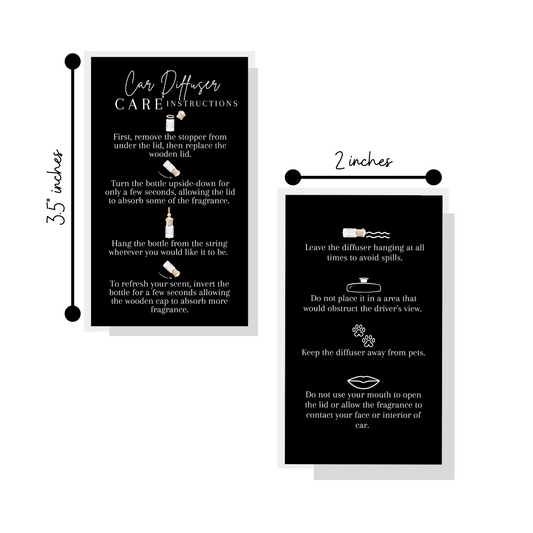 Car Hanging Diffuser Care Card | 50 Pack | Business Card Size 2x3.5" inchesRegular price $12.00 USDRegular priceUnit price / per-