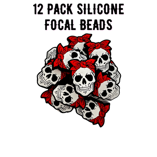 Skull with Bandana Silicone Focal Bead | 12 Pack