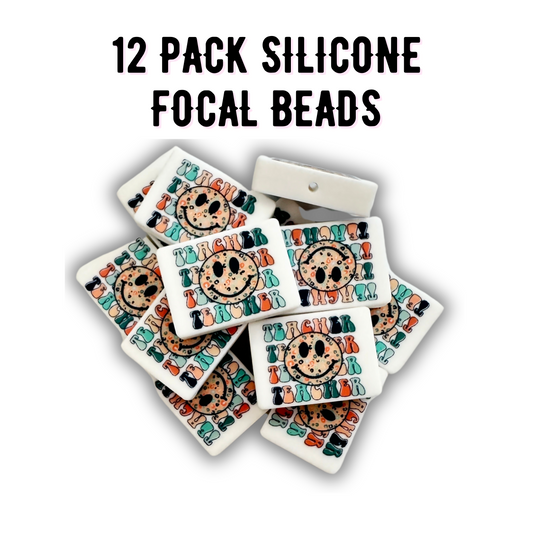 Teacher Smiley Face Silicone Focal Bead | 12 Pack