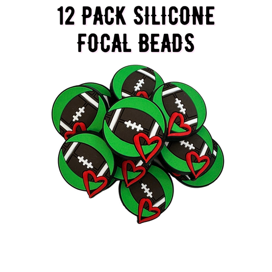Football with Heart Green Silicone Focal Bead | 12 Pack