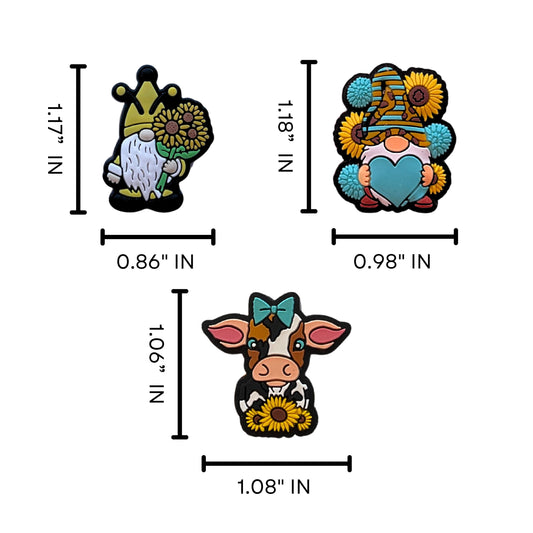 Sunflower Gnome, Cow Daisy and Bow Bumble Bee Silicone Focal Beads Mixed 12pk