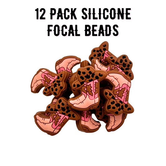Pink Cowboy Boot Silicone Focal Bead | 12 Pack