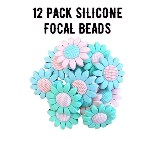 Daisy Flower Silicone Focal Bead Set | 12 Pc Mixed Pack