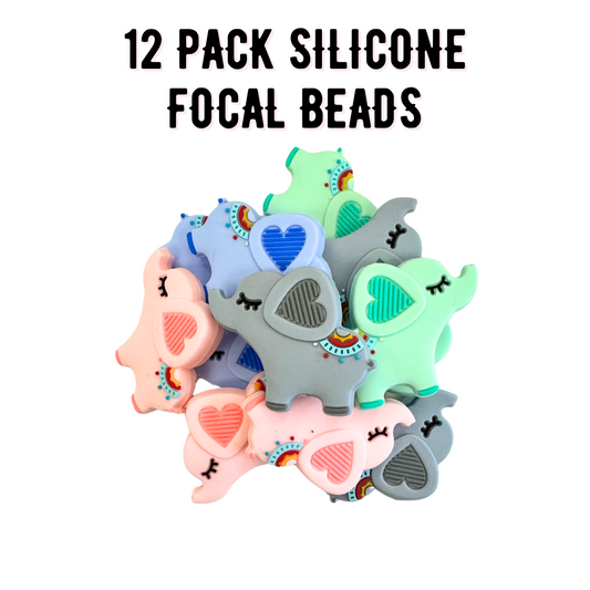 Elephant Silicone Focal Bead Set | 12 Pc Mixed Pack