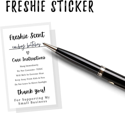 Freshie Care Instructions and Warning Labels Stickers | 2x3.5” 250 pc Roll Car Air Freshener Cards Inserts for Holographic Bag Package Write in ScentRegular price $16.99 USDRegular priceUnit price / per-