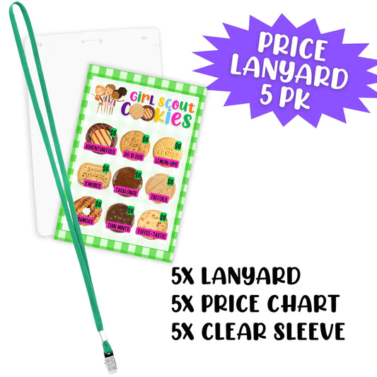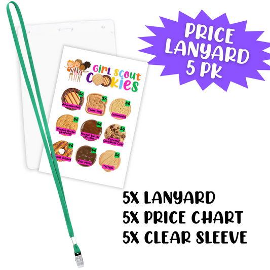 Scout Cookie Price List Reference Girl Cookie Booth Lanyard | 5 pk 4x6” in Clear Sleeve with Green LanyardRegular price $16.99 USDRegular priceUnit price / per-