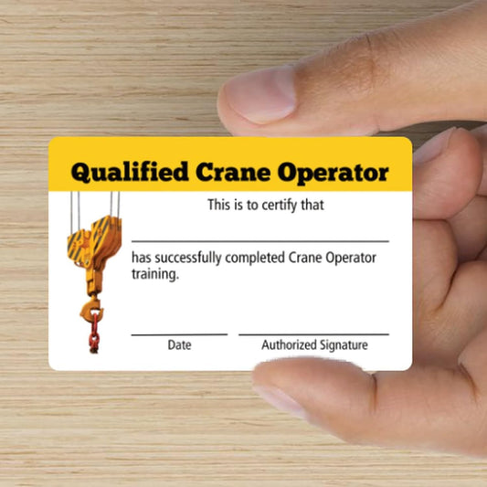 Qualified Crane Operator Certification Card | 5 pk 3.5x2.25” Plastic Wallet Training Certificate Fill in Name Completion Hard Hat OSHA Checklist Bulk ID Tag Overhead Crane Hand SignalsRegular price $11.99 USDRegular priceUnit price / per-