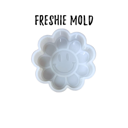 Smiley Face Flower Retro Boho 80’s Car Freshie Silicone Mold | 3.5 x 3” x 0.08” inches for Scented Aroma Beads Car Candle, Soap Oven Safe to 450 F Bake Heat Resistant