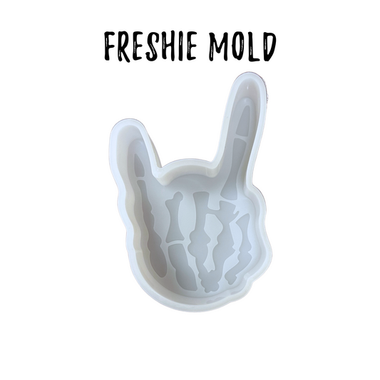 Skeleton Rock On Hand Fingers Car Freshie Silicone Mold | 4.25 x 2.5” x 0.08” inches for Scented Aroma Beads Car Candle, Soap Oven Safe to 450 F Bake Heat Resistant Peace Sign