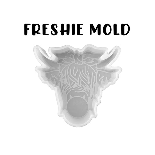 Hairy Highland Dairy Cow Blowing Bubble Gum Freshie Silicone Mold 4.88x4.68x1”