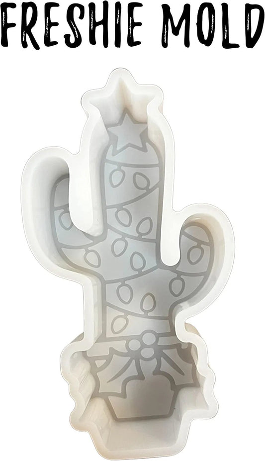 Christmas Cactus with Light in Pot Holiday Freshie Silicone Mold Heat Resistant Baking Scented Aroma Beads Freshie Supplies 5x2.5” inches