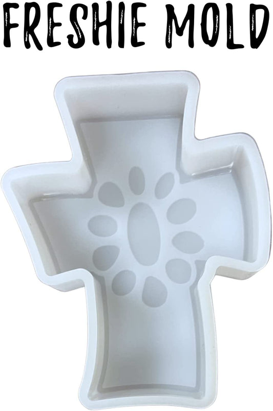 Cross with Turquoise Concho Western Car Freshie Silicone Mold | 3 x 3.75” x 0.08” inches for Scented Aroma Beads Car Candle, Soap Oven Safe to 450 F Bake Heat Resistant Christian Religious