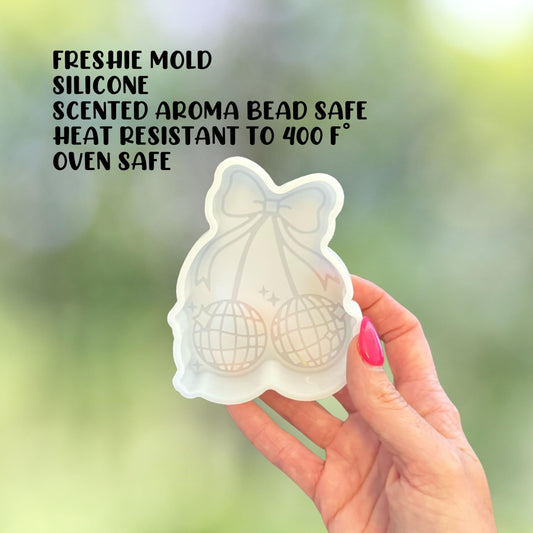 Disco Ball Cherries with Bow Silicone Freshie Mold 3.1x4” Cherry 90’s Retro Trendy Cowgirl Hat Aroma Beads Fragrance Wholesale