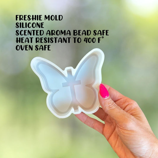 Butterfly with Cross Silicone Freshie Mold 4x3.5” Christian Religious Girly Bible Verse Country Aroma Beads Inspirational