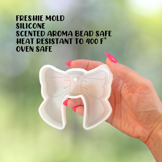 Bow Silicone Car Freshie Mold 4x3.5” Checkered Freshener for Aroma Beads Oven Safe Large Girly Pink Girly Trendy Circles Rounds