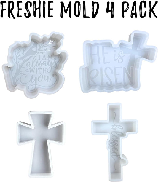 Christian Jesus Religious Car Freshie Silicone Molds | Bulk 4 pk Car Freshener Scented Aroma Bead Oven Safe 450 F He is Risen, Cross, Blessed, I Am Always with You Cardinal