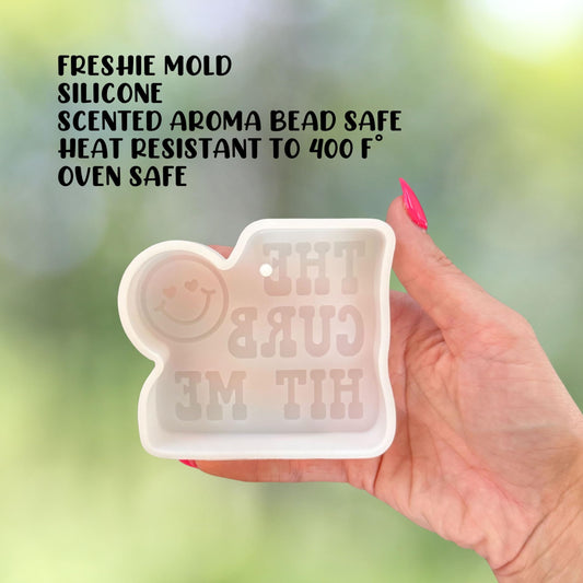 The Curb Hit Me Smiley Face Heart Eyes Silicone Freshie Mold 3.75x3.25” Sarcastic Humor Saying Car Candle Bad Mom Club