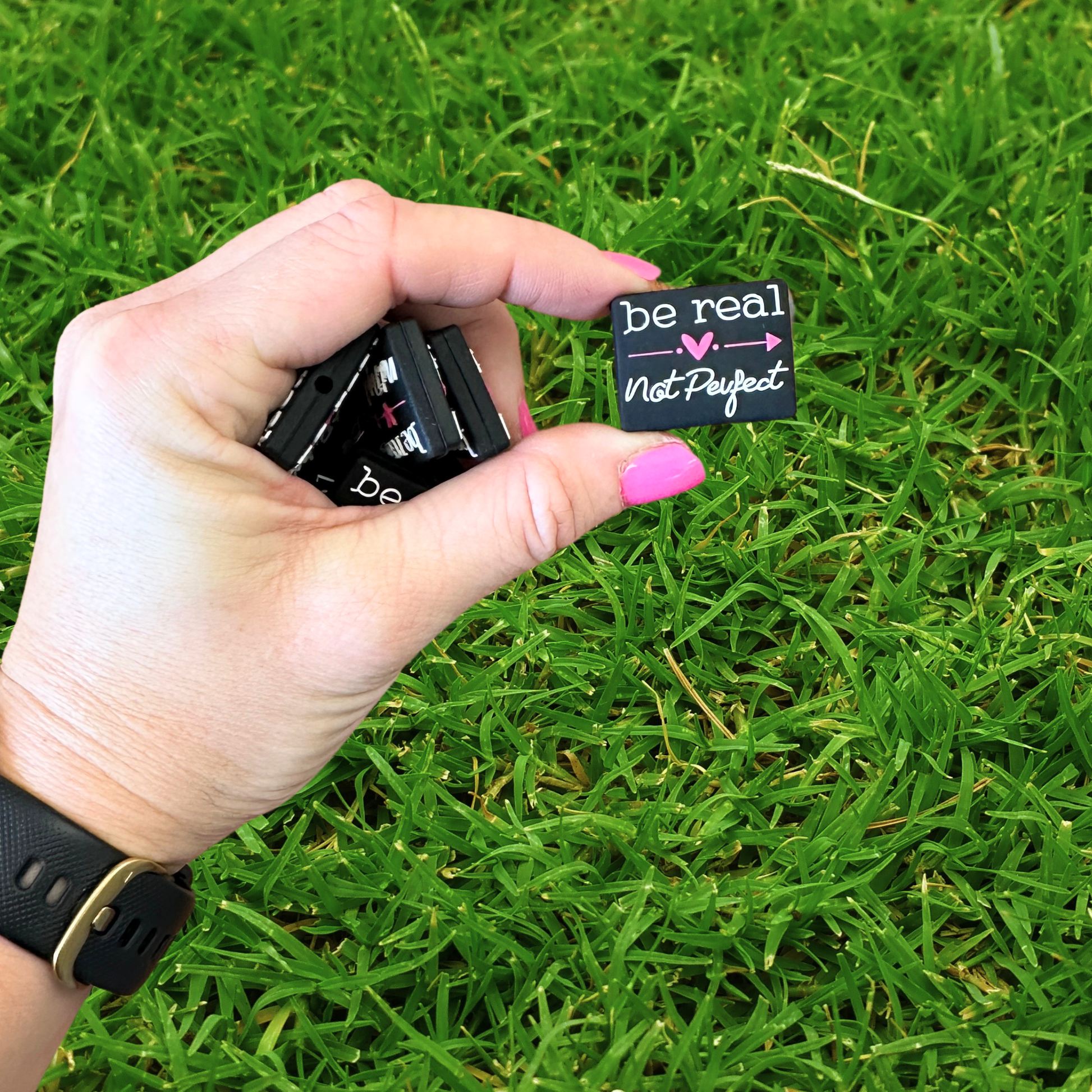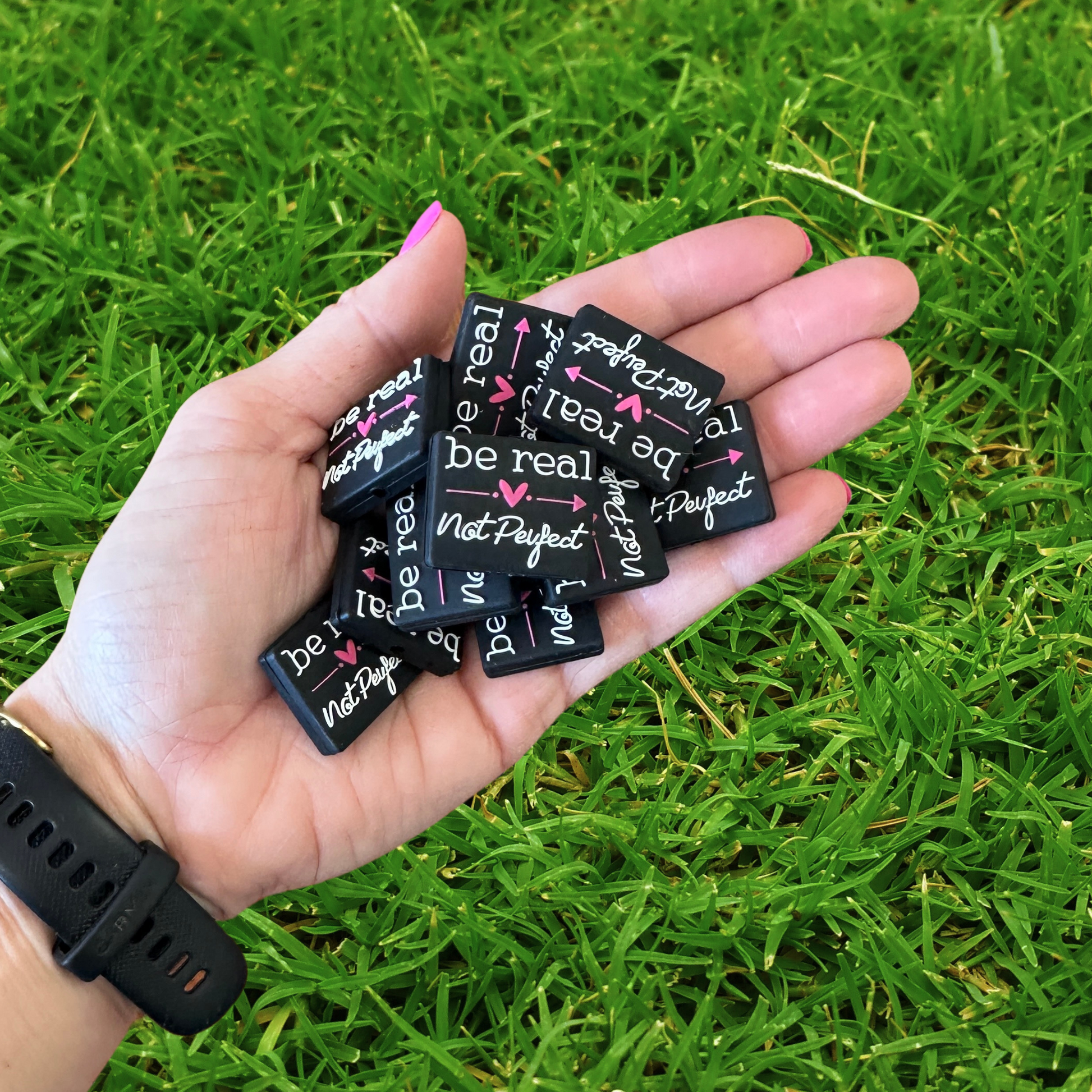 Each package includes 12 beads adorned with the heartfelt message "Be Real ♥ Not Perfect," adding a personal touch to every creation. Whether you're a seasoned crafter or just starting, our silicone focal beads with sayings are sure to inspire your next masterpiece.