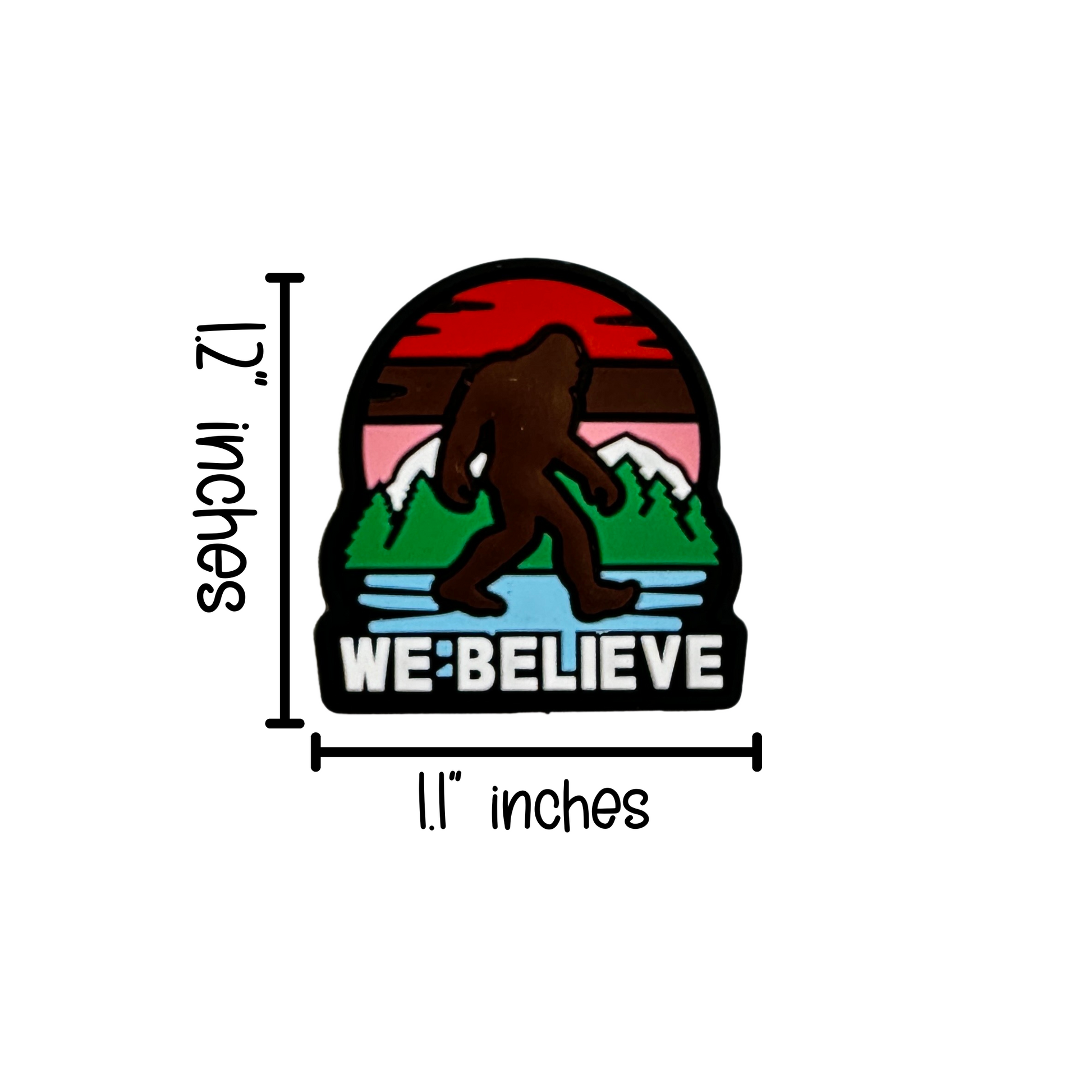Unleash your inner explorer with our 12-Pack of Silicone Focal Beads featuring the enigmatic phrase "We Believe," set against an image of Bigfoot lurking in the background. Each bead is meticulously crafted from high-quality silicone, making them perfect for a myriad of crafting endeavors.