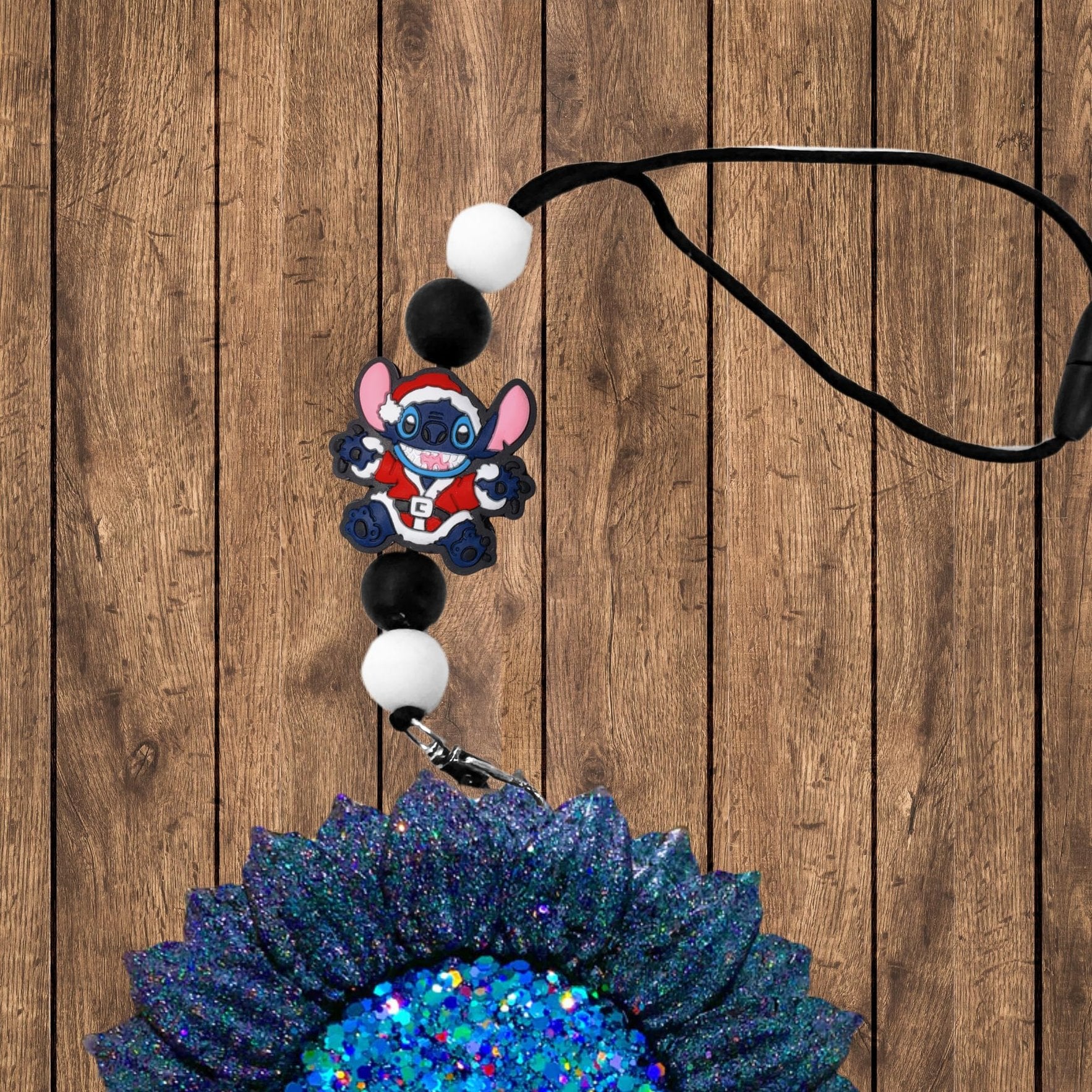 Festive Santa Blue Monster Design – Features adorable blue monster beads wearing classic Santa hats, combining playful charm with holiday spirit.