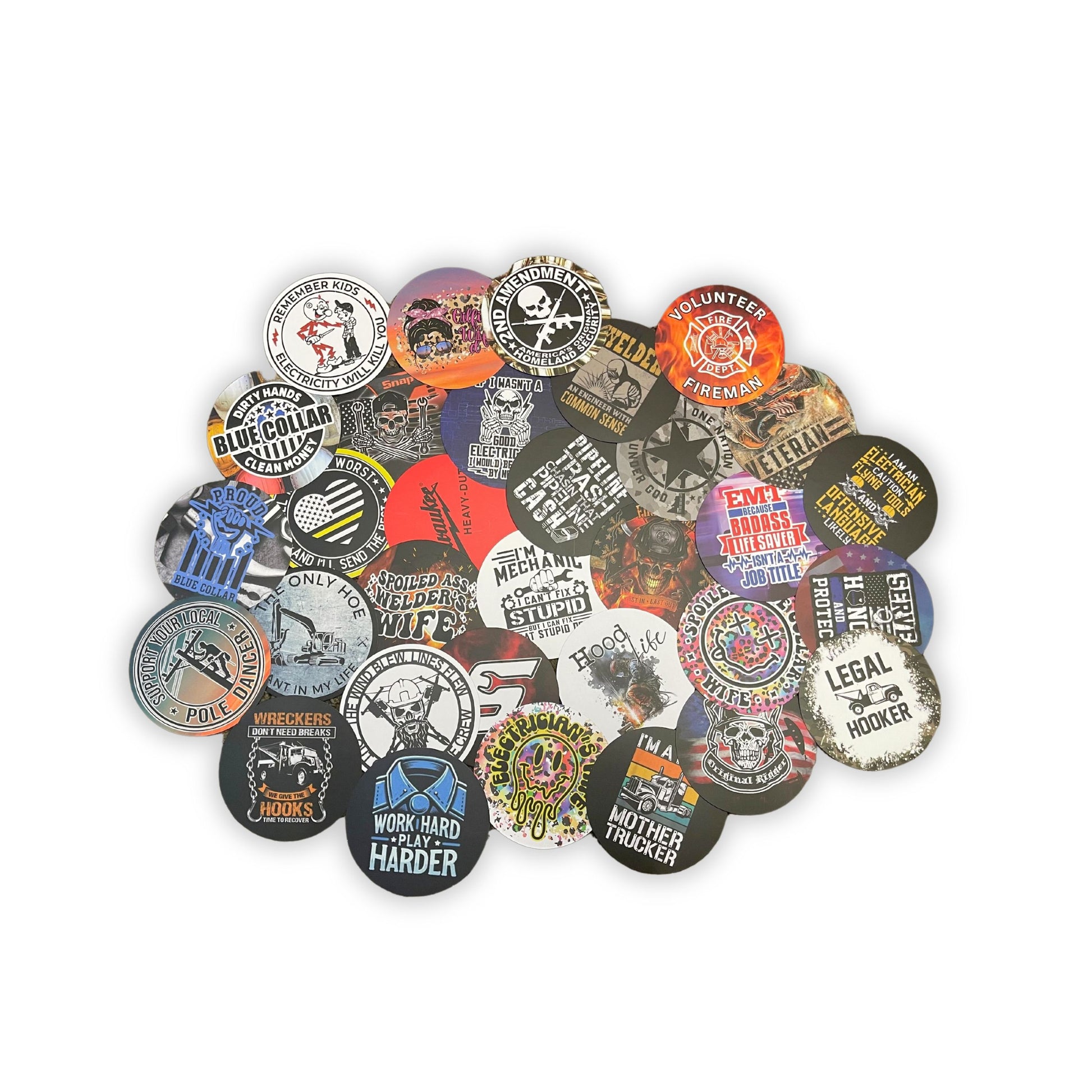 Discover the rugged appeal of your choice of32 Pack of 2.5  or 3 inch Round Cardstock Cutouts for Freshies, tailored for the blue-collar workforce and designed with men's car freshies in mind. Each set includes an array of blue collar cardstock designs, such as fireman, mechanic, veteran, lineman, backhoe operator, and oil field themes, reflecting the hard-working spirit and pride of various trades.