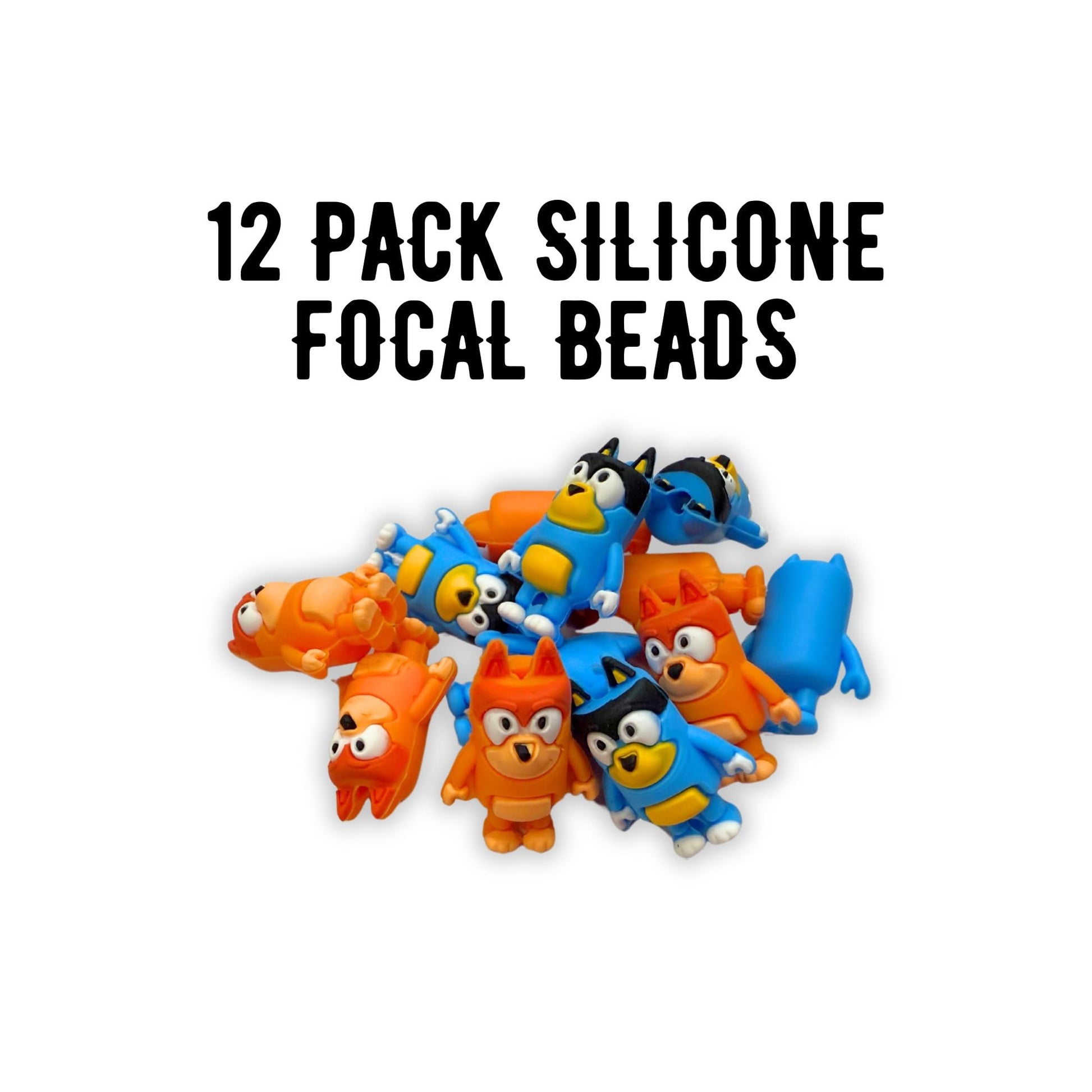 Blue Dog Character Bingo Show Heeler TV 3D Silicone Focal Bead 12pk Bulk Assorted 6 Each Boy Mama for Beadable Keychain Pen Freshie