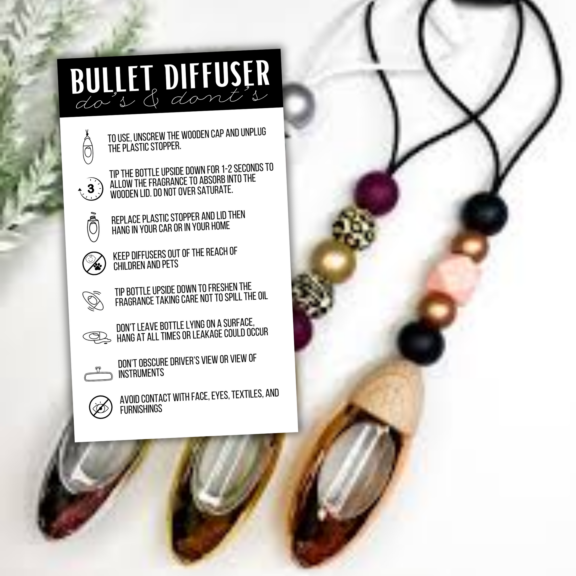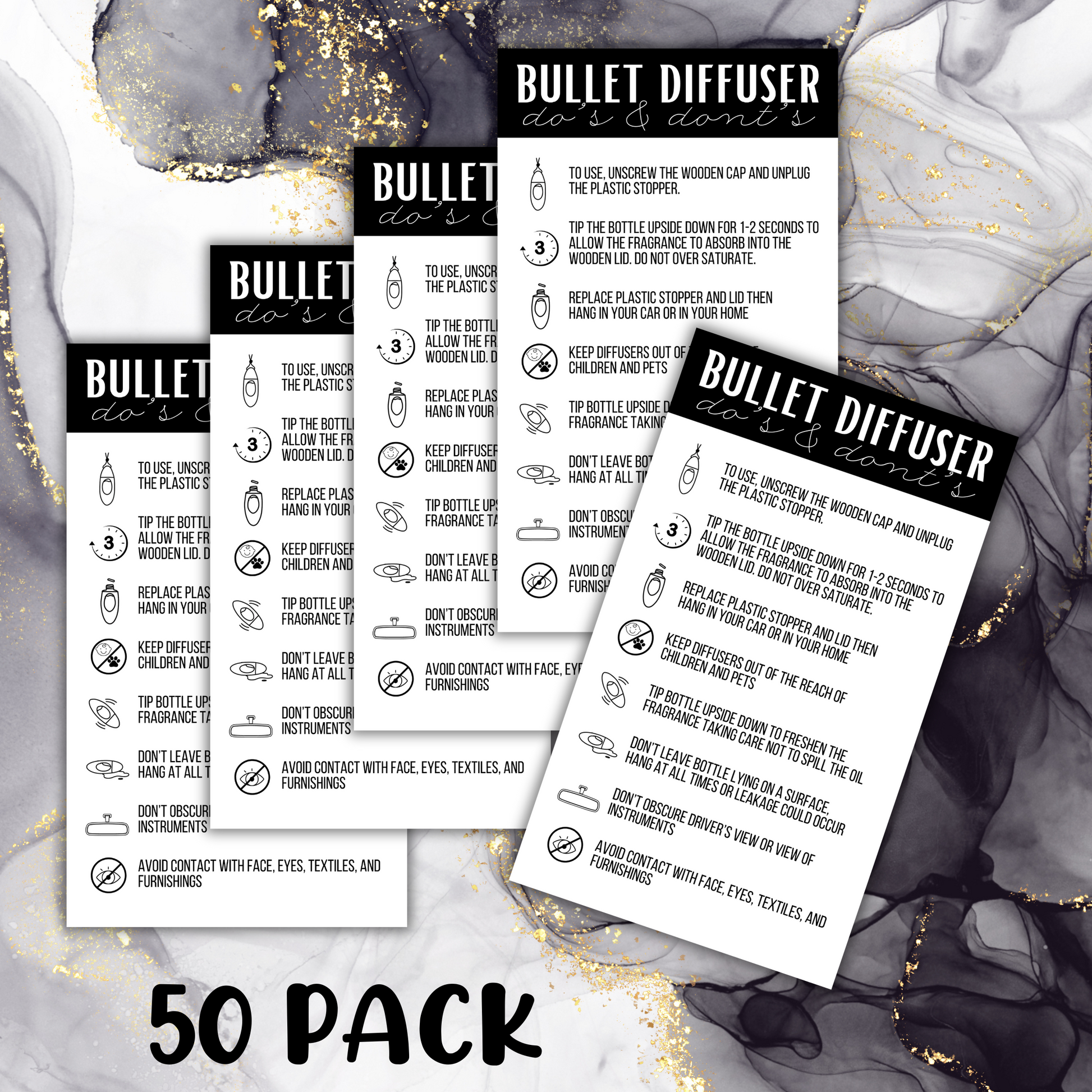 With our Bullet Diffuser Instructions, embrace the essence of aromatherapy in your vehicle or distribute these instruction cards as part of your car diffuser supplies. Each card is a gateway to enhanced air quality and a delightful scent experience on the go.