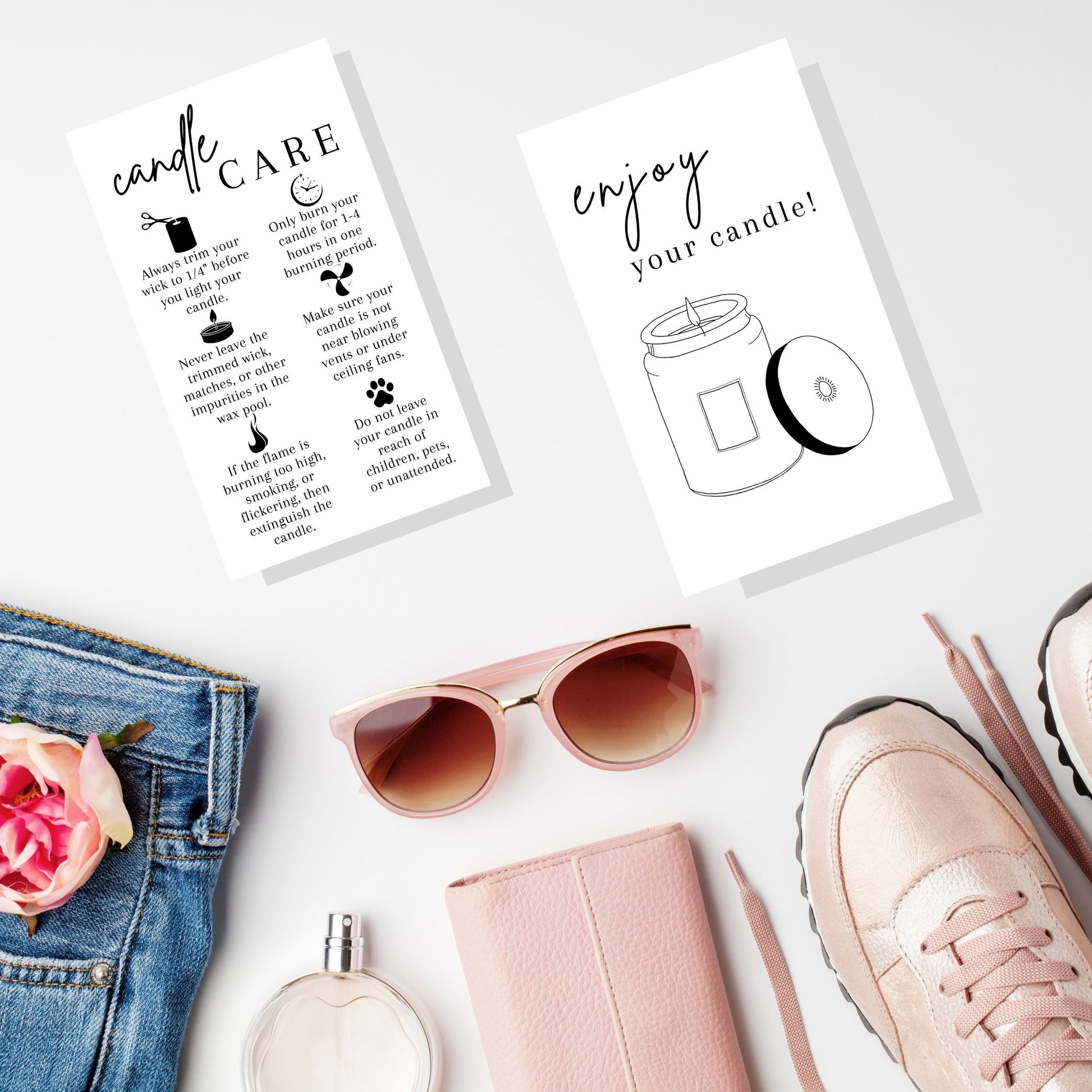 As a provider offering homemade candles you need the best instructions cards with as much detail as possible! Having them printed on this nice quality card stock makes it even more likely your clients will keep their instructions and read them thoroughly. Find the perfect care card to match your candle decor! Grow your business!