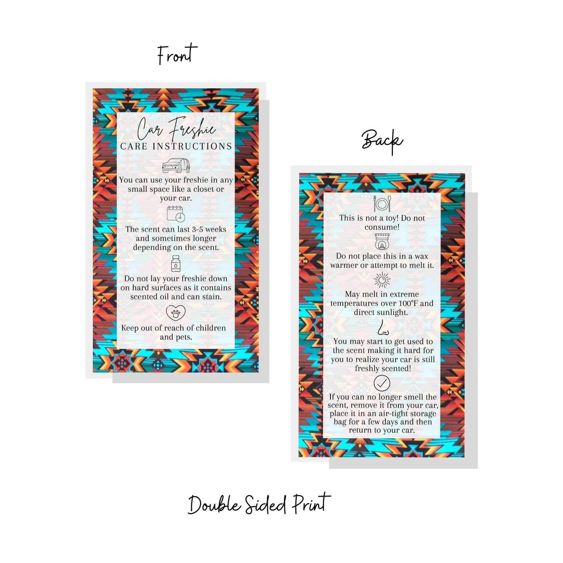 Car Freshie Care Instructions | 50p pack | 2x3.5" inches Business Card | Western Aztec Sarape Design