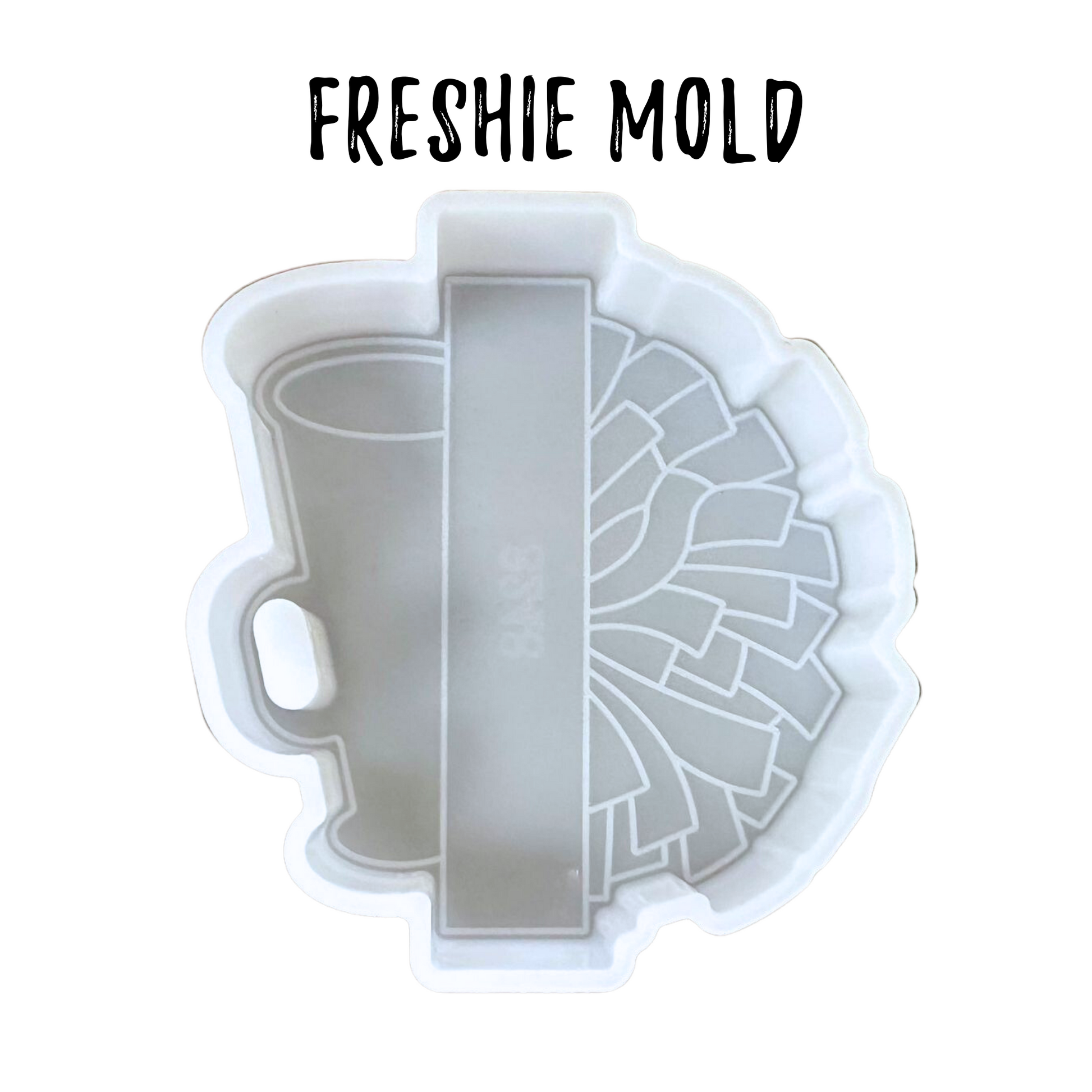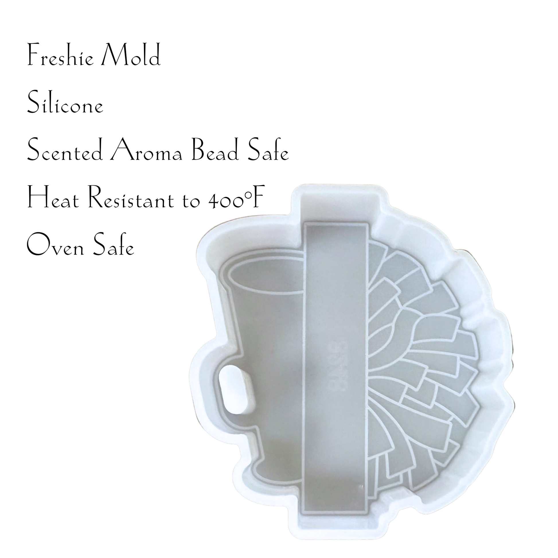 Includes 1 silicone mold in the shape of a Cheerleader Megaphone Pom Pom Freshie Silicone Mold! This mold measures 4.25” Tall x 4.5” Width x 1” Deep, a thick durable quality silicone mold.