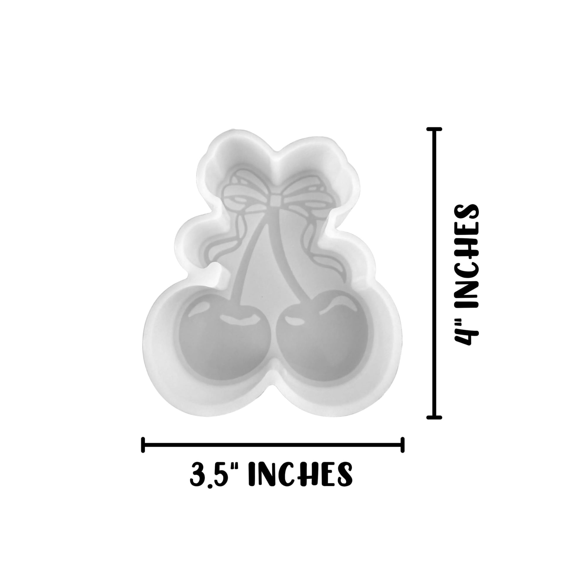 Cherries with Bow Silicone Freshie Mold 3.5x4” Car Candle Cherry Retro 90’s Trendy Summer Scented Aroma Beads Wholesale Supplies DIY