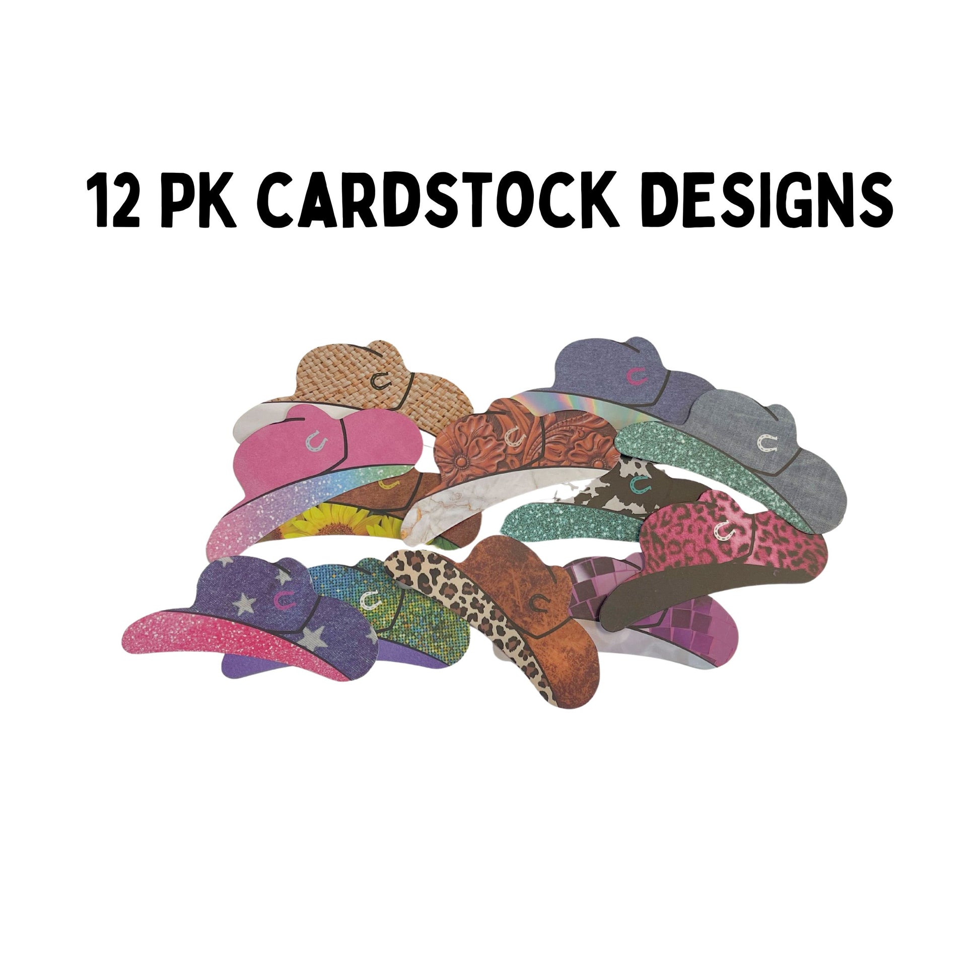 Dive into the spirit of the wild west and disco glam with your choice of our Cowboy Hat + Silicone Freshie Mold Combo Pack that includes 12 Pack of Disco Cowgirl Hat Cardstock Cutouts, or the 12pack cardstock cutouts exclusively designed for the silicone freshie mold. Each cardstock cutout measures 31mm x 73mm in size - perfect for car freshener hangers. These unique cowboy hat cardstock cutouts are the perfect addition to your DIY freshie making supplies, blending the iconic cowboy and cowgirl hat silhouette with a touch of disco cowgirl flair. Ideal for anyone looking to add a western twist or disco vibe to their car with custom-made freshies. Each cutout is meticulously crafted to ensure it fits perfectly in freshie molds silicone, making them suitable for a wide range of scent-related DIY projects.