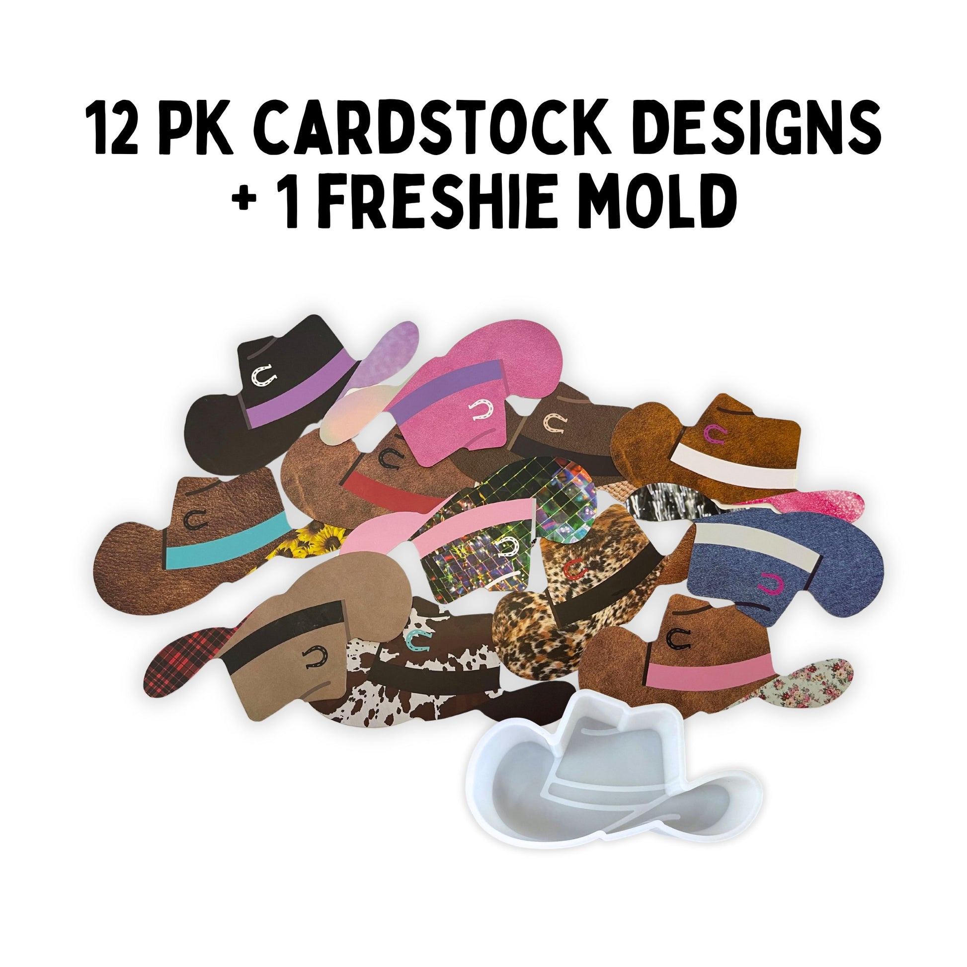 Dive into the spirit of the wild west and disco glam with your choice of 12 Pack of Disco Cowgirl Hat Cardstock Cutouts or 12 pack plus freshie mold, exclusively designed for silicone freshie molds. Each cardstock cutout measures 67x134mm in size - perfect for car freshener hangers. These unique cowboy hat cardstock cutouts are the perfect addition to your DIY freshie making supplies, blending the iconic cowboy and cowgirl hat silhouette with a touch of disco cowgirl flair. Ideal for anyone looking to add a western twist or disco vibe to their car with custom-made freshies. Each cutout is meticulously crafted to ensure it fits perfectly in freshie molds silicone, making them suitable for a wide range of scent-related DIY projects.