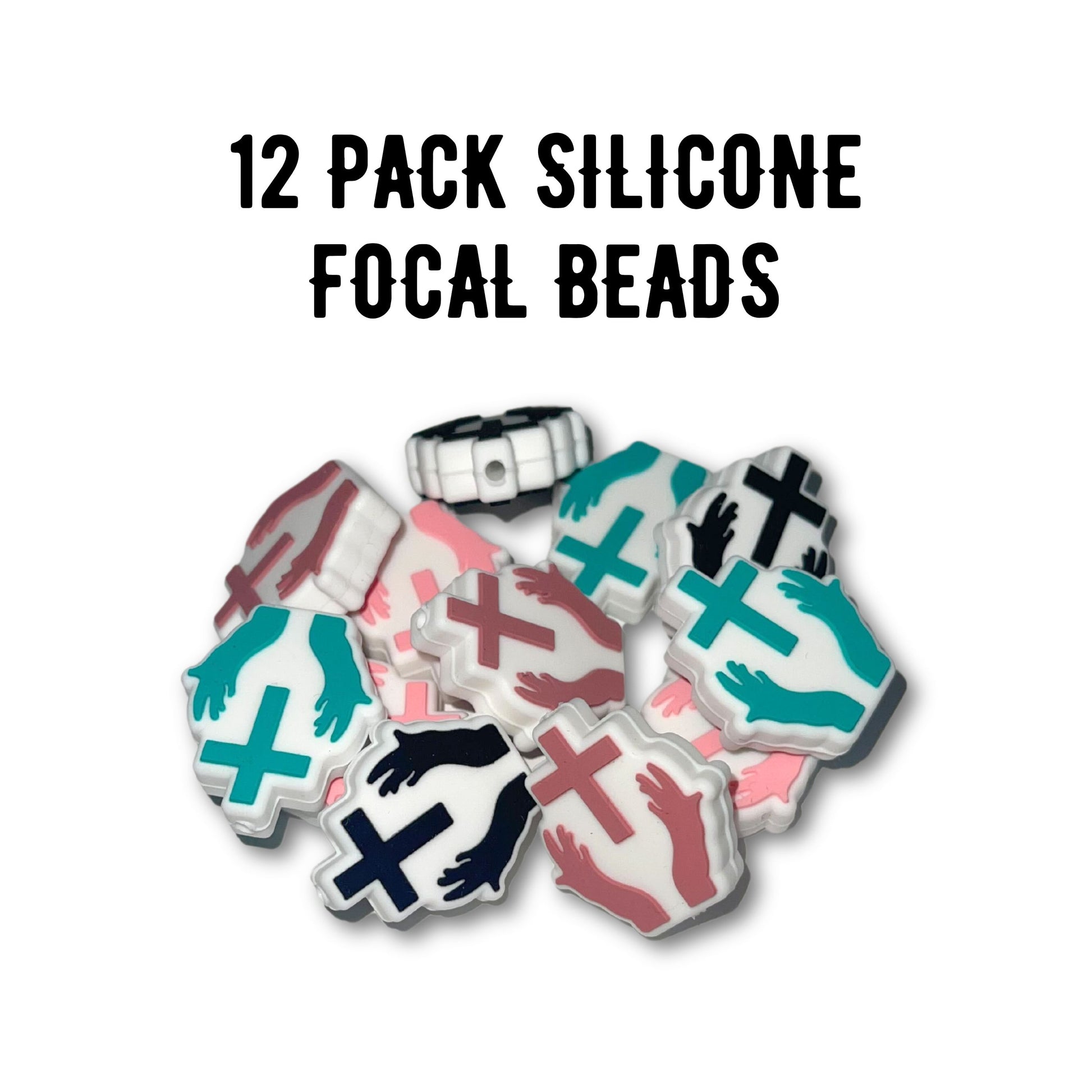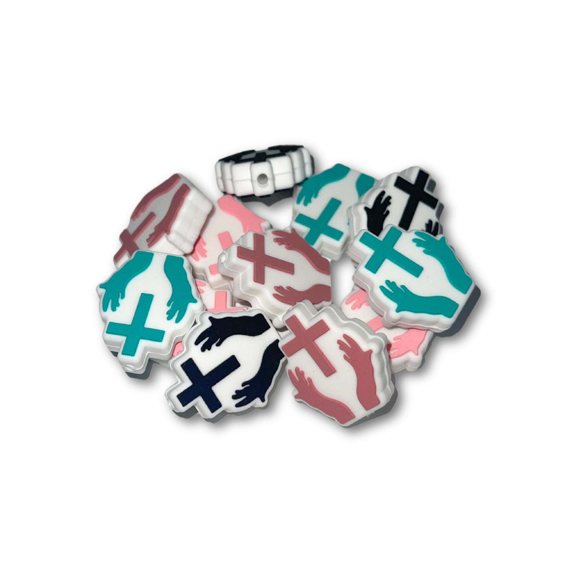 Cross with Praying Hands Christian Religious Bible Silicone Beads | 12pk