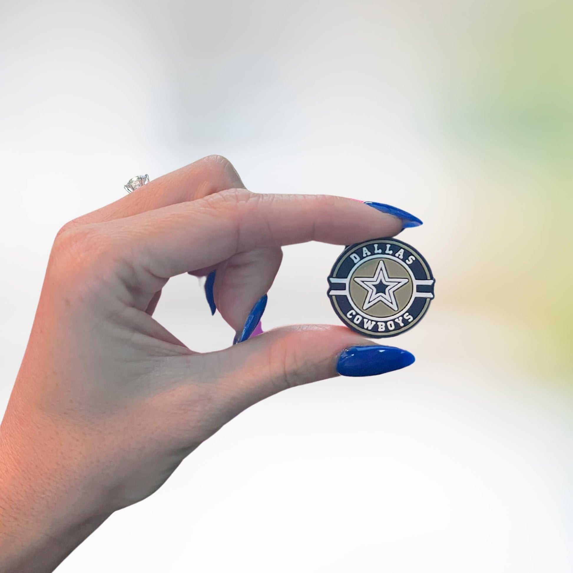 Dallas Focal Bead Sports Football Circle 12pk 1.17” for Bulk Keychains Silicone Charm Beadable Pens Freshie Hangers Logo Blue Silver