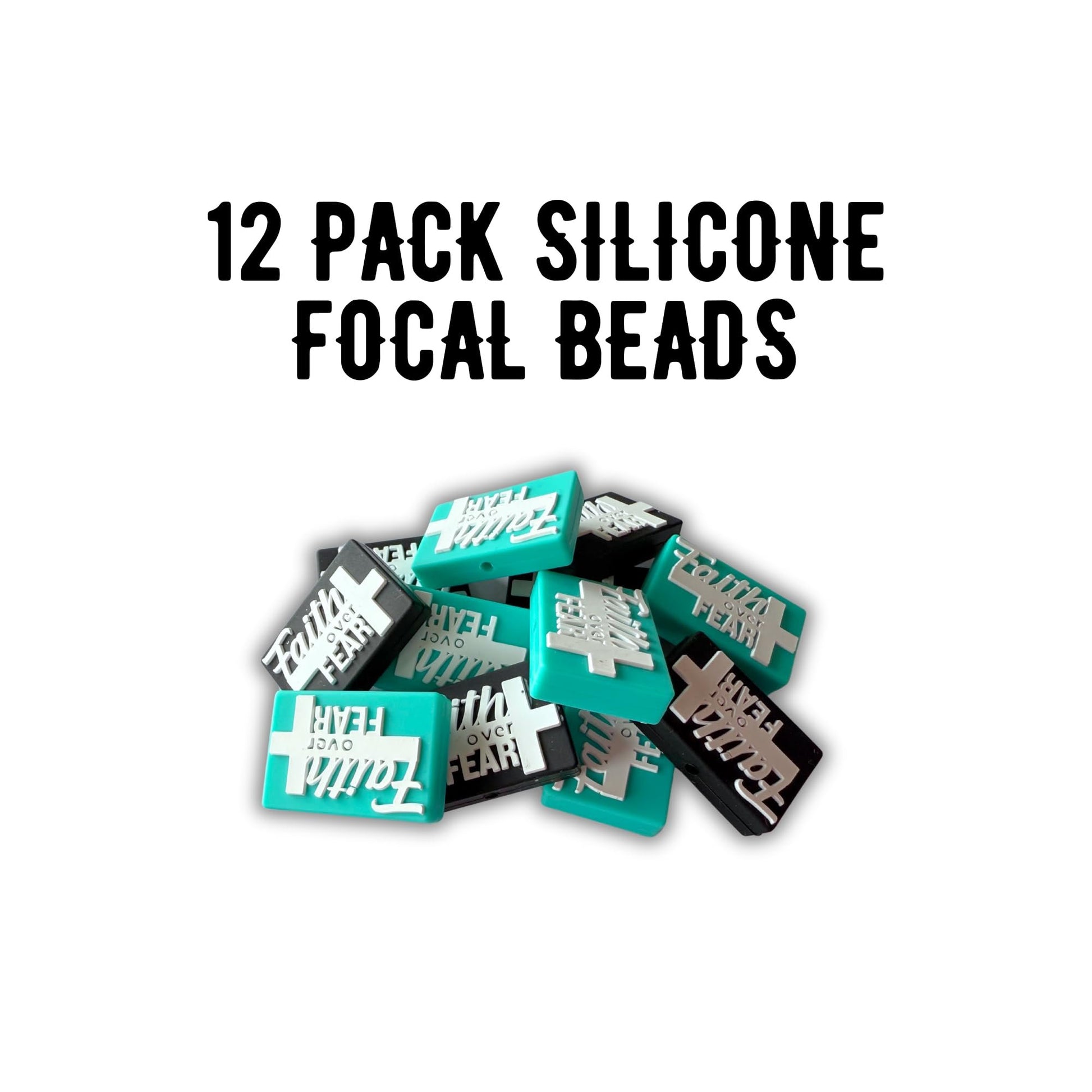 Faith Over Fear Rectangle Silicone Focal Bead 12pk 3x2cm 6pc Each Color Bible Verse Christian Encouragement for Beadable Pen Keychain Freshie Hanger