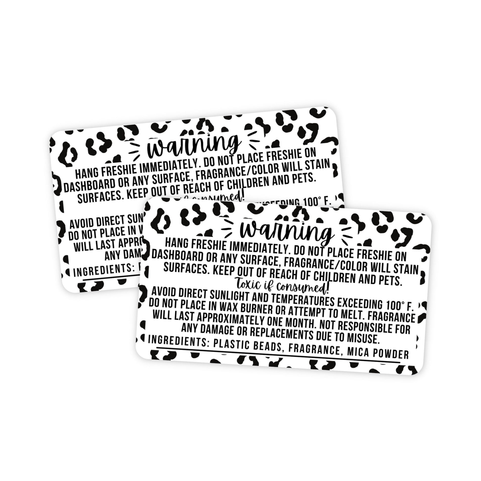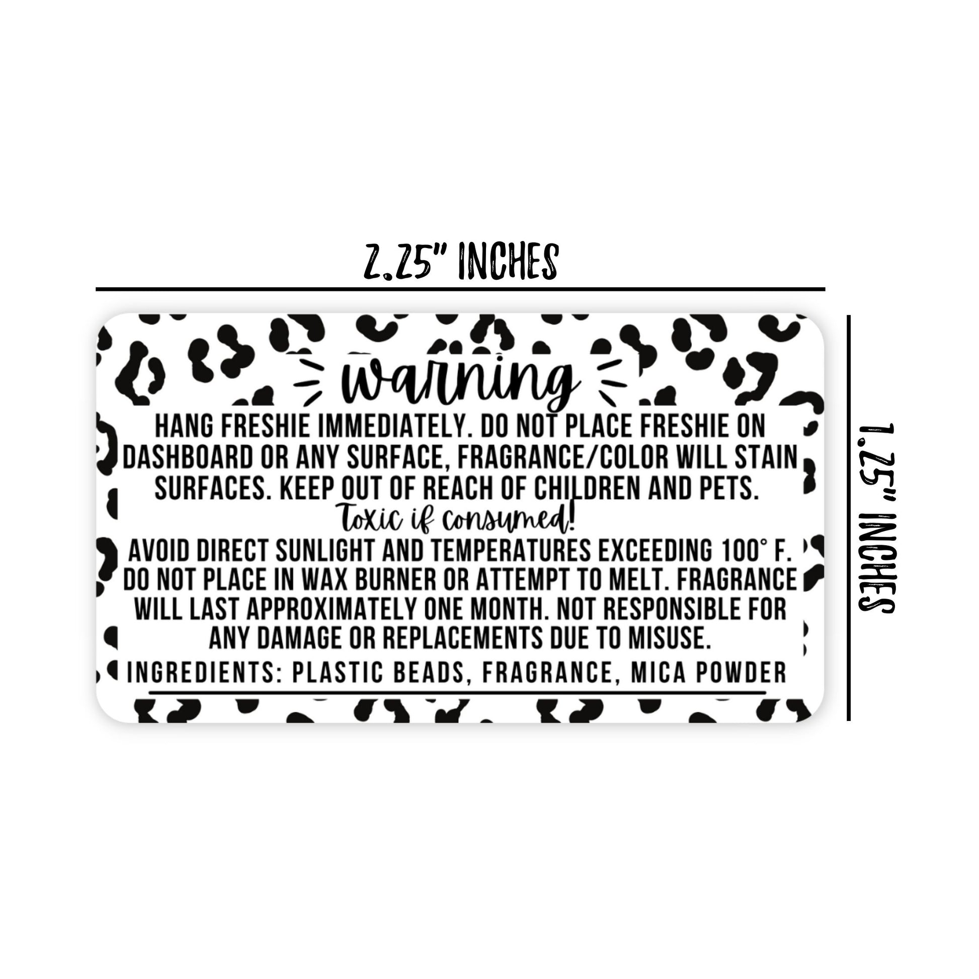 Freshie Warning Label Stickers | 350 Pack | Sticker Size 2.25" in x 1.25" in | Leopard Design