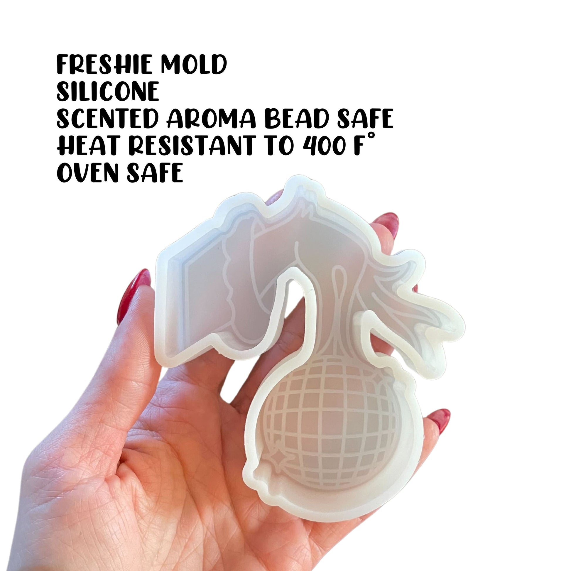 Unleash your holiday creativity with the Green Christmas Villain Disco Ball Silicone Freshie Mold, measuring 3.5 x 4.1 inches! This whimsical mold features a charming green Christmas character holding a sparkling disco ball, perfect for crafting festive disco ball Christmas freshies that add a playful touch to your holiday decor. Inspired by "the villain who stole Christmas," this mold is ideal for anyone looking to celebrate the season with a fun and unique twist.