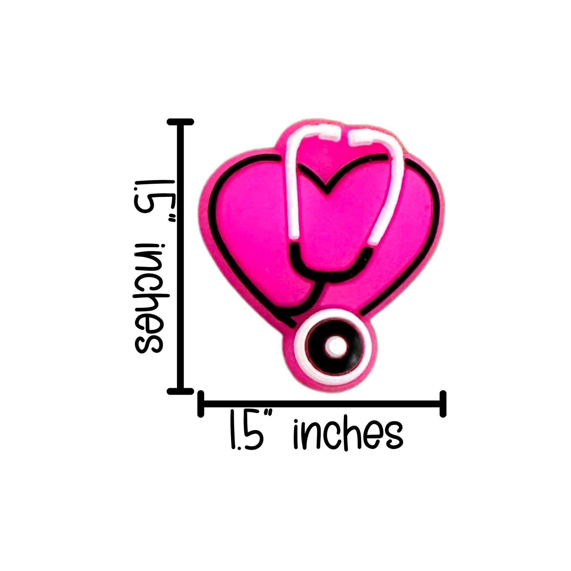 Unveiling our 12-Pack Heart Stethoscope Silicone Focal Beads in Mixed Colors, sized at 1" x 1.2" each, a must-have for your crafting endeavors! These vibrant beads are tailor-made for your DIY projects, whether it’s a DIY nurse friendship bracelet, bracelets for doctors, gifts for nurses, gifts for nursing graduates, gifts for nurse week - or just adding nurse charms to your pens and lanyards - this colorful set is for you!