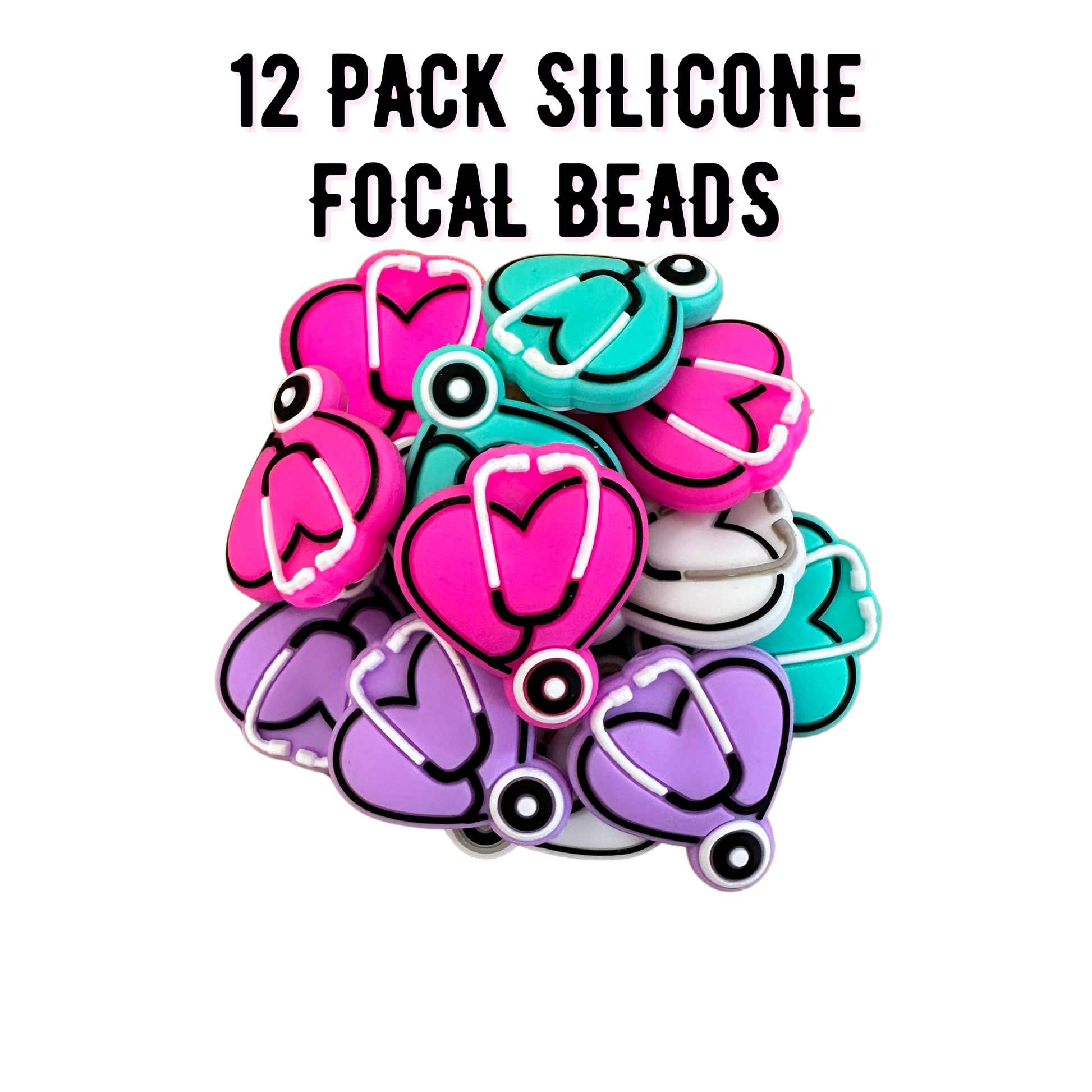 Heart Stethoscope Silicone Focal Bead Set | 12 Pc Mixed Pack