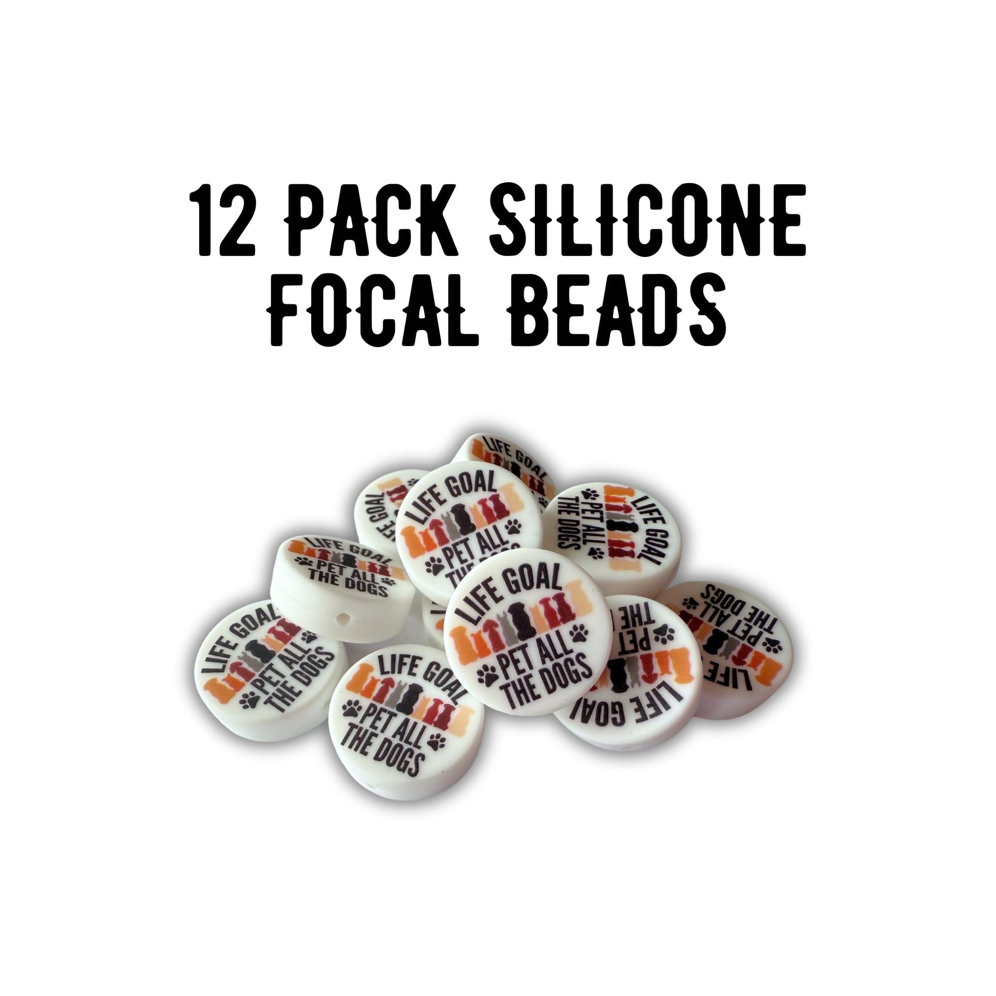 Bulk 12-Pack for DIY Projects – Includes 12 circle silicone focal beads, great for craft businesses, group activities, or stocking up on dog-themed supplies.
