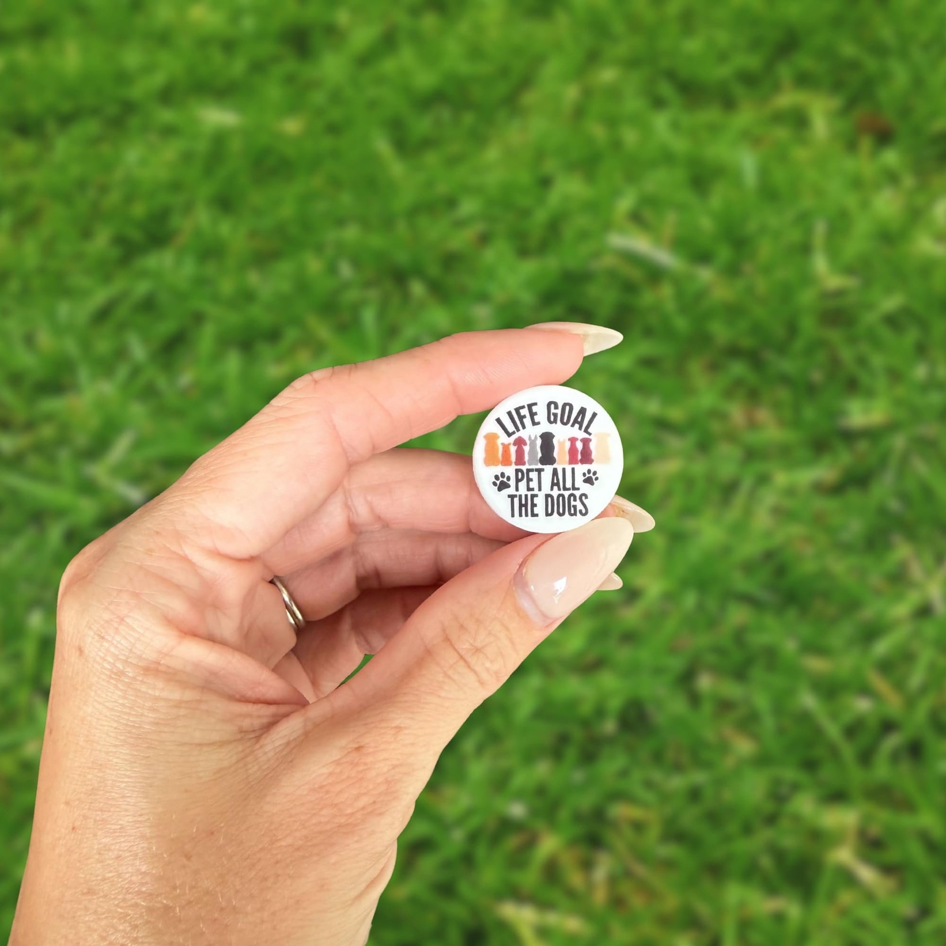 Adorable Dog-Themed Design – Features a playful quote, “Life Goal: Pet All The Dogs”, in vibrant print on a clean, round 2.6 cm silicone bead—perfect for dog lovers, pet owners, and animal enthusiasts.