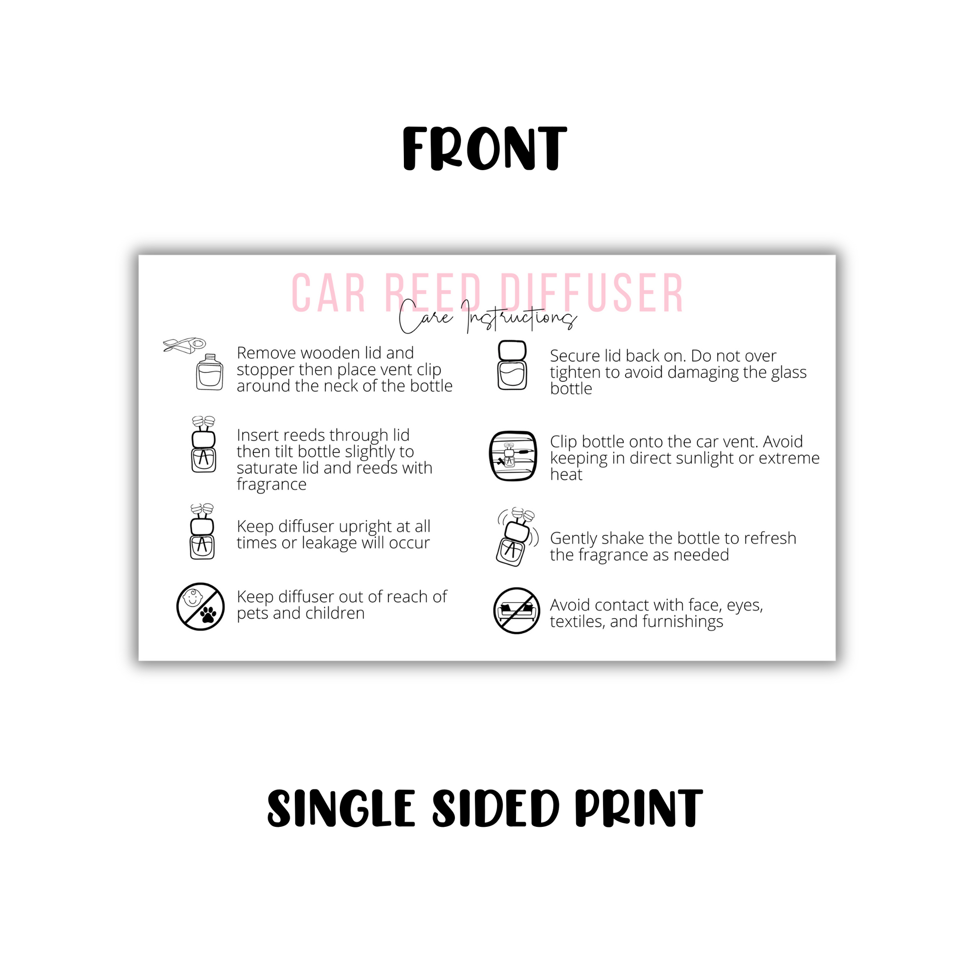 Reed Vent Car Oil Diffuser Care Instruction Card | 50 pk 2x3.5”