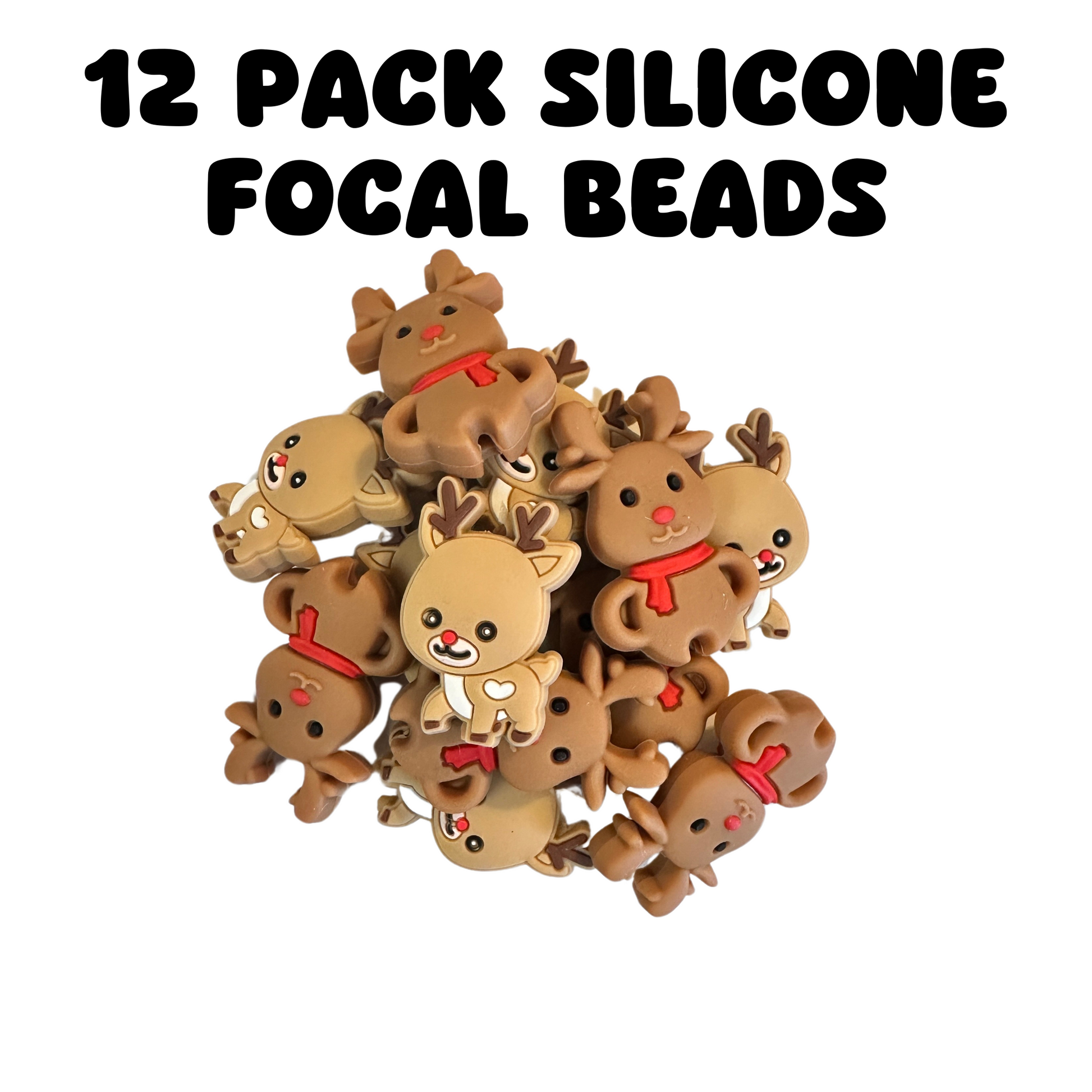 Reindeer Christmas Silicone Focal Beads | 12 Pack