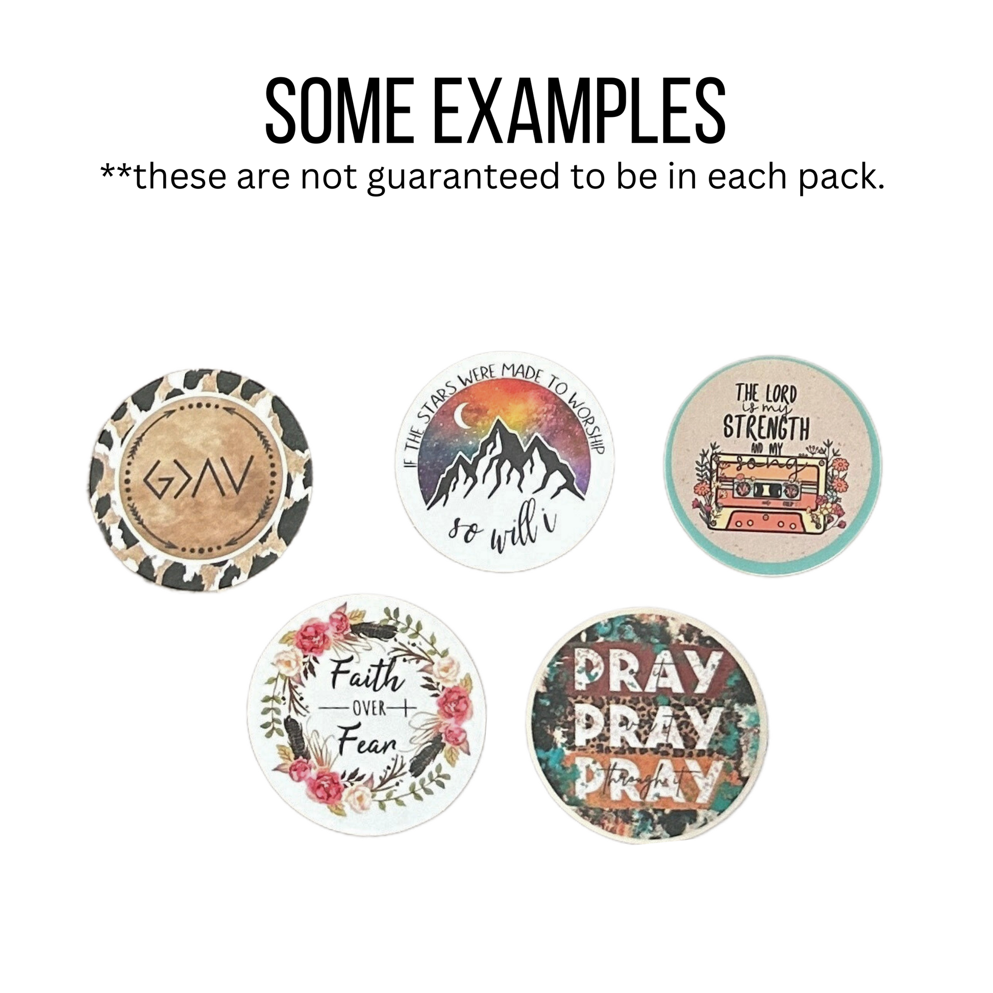 Our Religious Freshie Cardstock Cutouts Variety 32-Pack are a perfect addition to your car freshies and a delightful way to infuse your vehicle with religious positivity and style. This pack includes 32 beautifully designed in your choice of 2.5" or 3" round cardstock cutouts, each adorned with religious phrases and sentiments. Elevate your car's ambiance with these unique and trendy Bible verse car freshie molds, adding a touch of faith and inspiration to your daily commute.