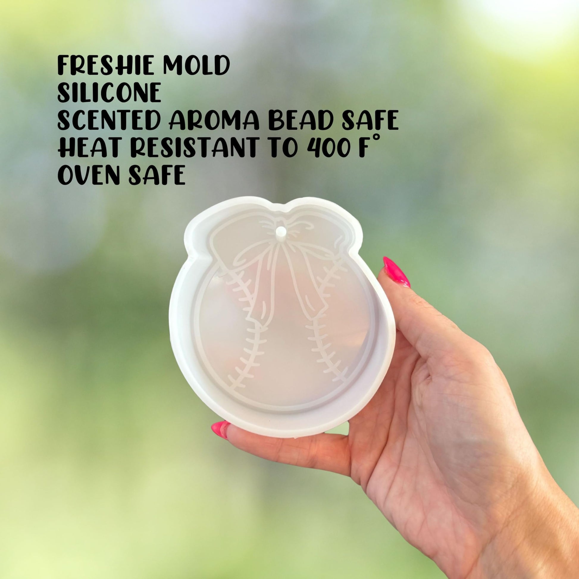 Softball Baseball T-Ball with Bow Silicone Freshie Mold 4x3.6” Car Freshener for Aroma Beads Oven Safe Team Sports Moms Focal