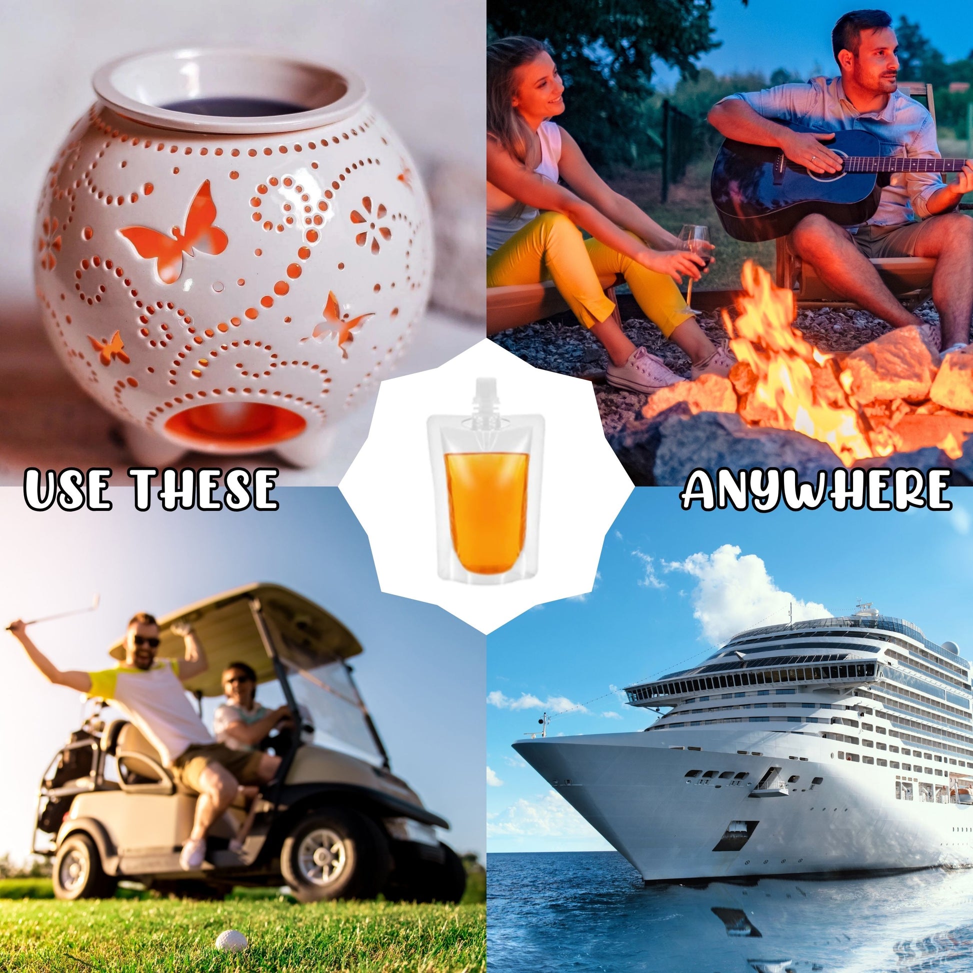 Ideal for various uses, these pouches can be utilized as squeezable wax melt pouches, plastic flask bottles, or even for storing liquids discreetly. The squeezable wax containers are perfect for those who love DIY wax melts, offering an easy way to store and dispense your creations. Each pouch is designed for durability and ease of use, ensuring your wax melts stay fresh and ready for use. Perfect for travel, outdoor sports, concerts, and events. These pouches can be used as Rum Runners for Cruise, concealable and reusable drink bags, ensuring your drinks stay safe and leak-free.